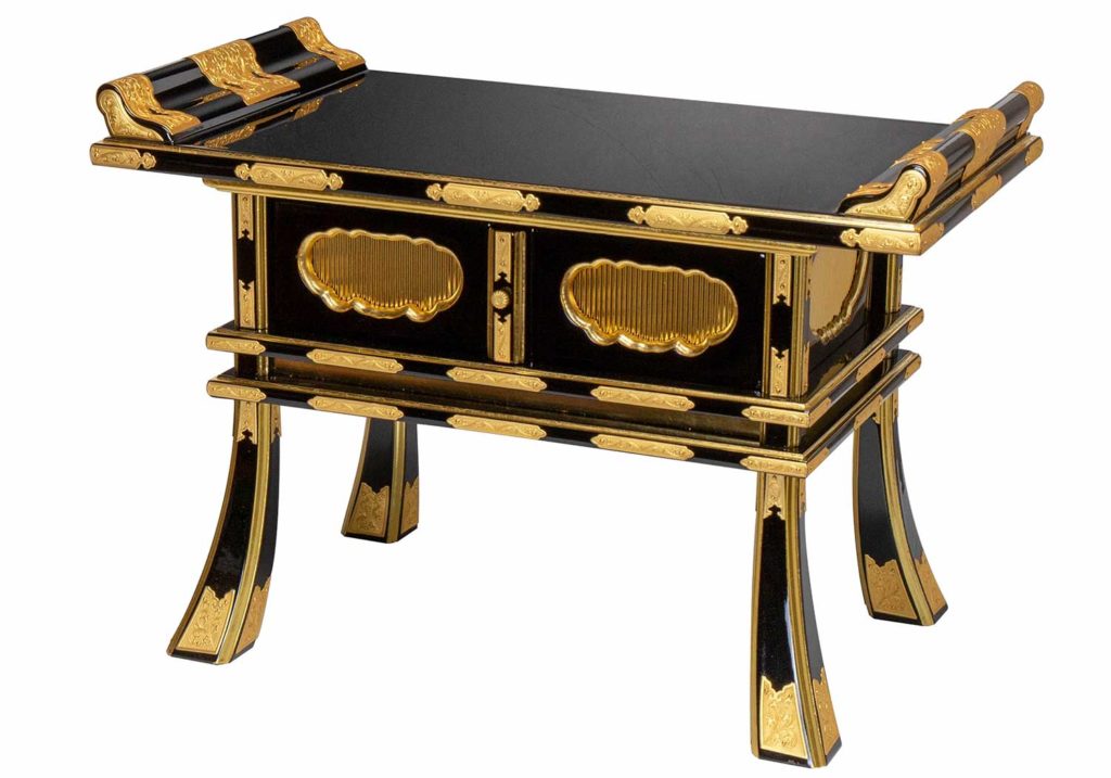 経机(きょうづくえ)は、仏壇の前に置く高さ30cm前後の机のことです。本来の役目は経本を読む際に使用するものですが、おりんや香炉を乗せてもかまいません。数珠やお線香などの小物をしまえる小さな引き出しが付いているタイプもありますので、仏具をまとめて収納することもできます。