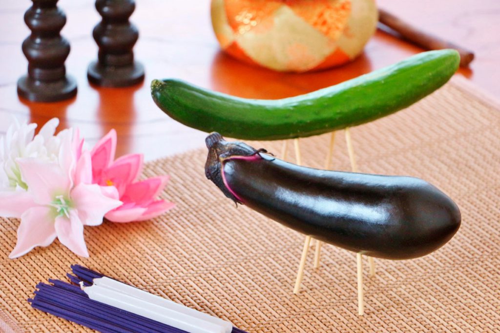 キュウリの「精霊馬」とナスの「精霊牛」の飾り方