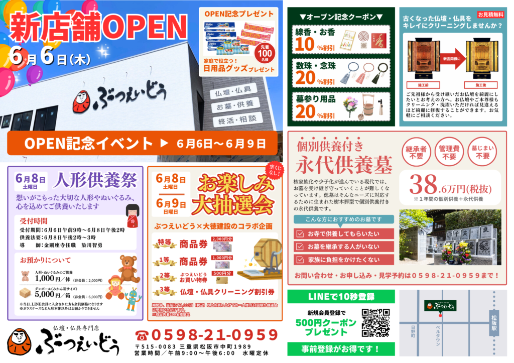 - 全品対象:店内のすべての仏壇が対象です。大小様々なサイズやデザインからお選びいただけます。