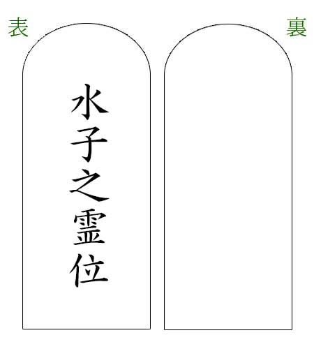 水子位牌の場合は表面に「水子之霊位」または「〇〇家水子之霊位」とだけレイアウトすることが多いです。